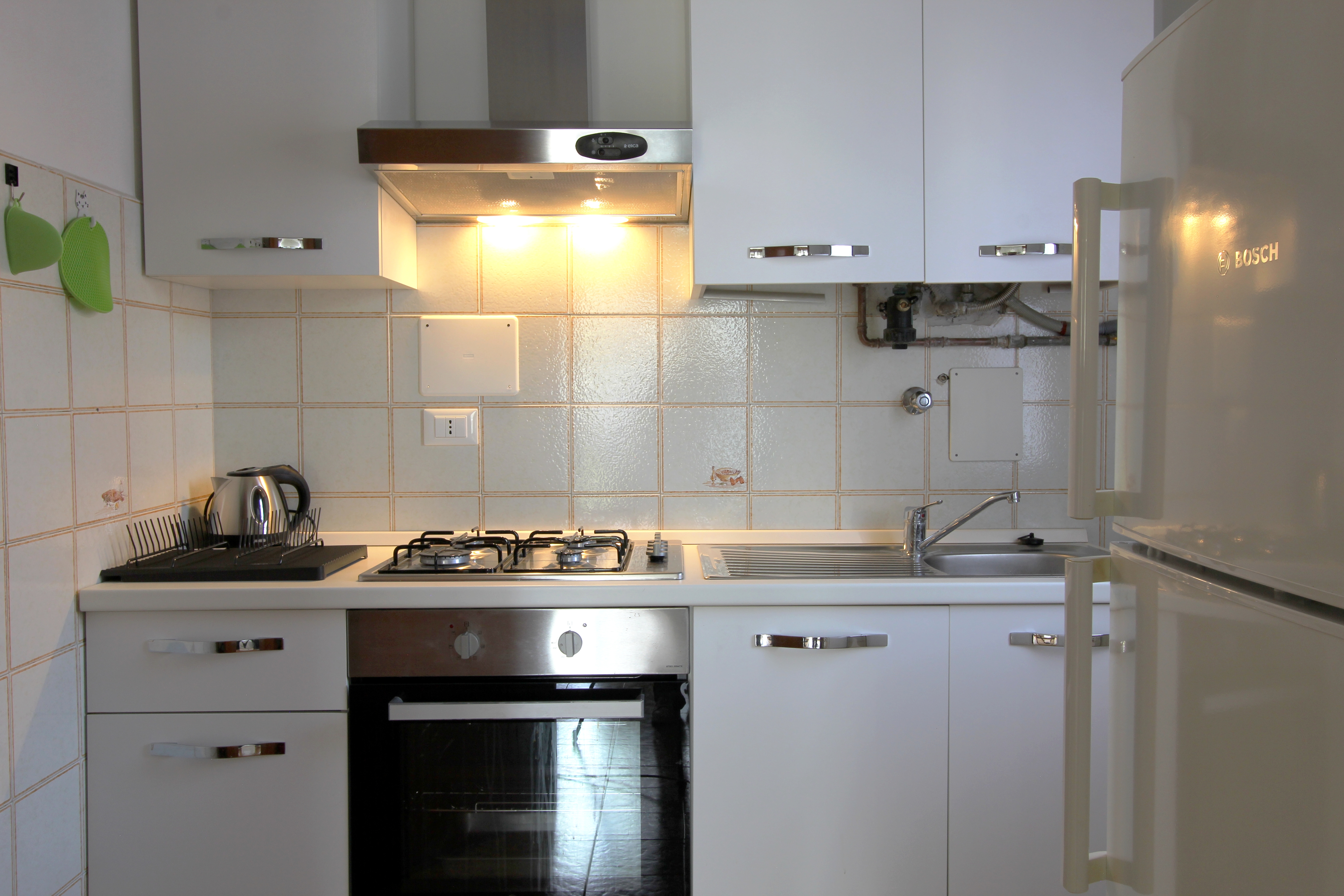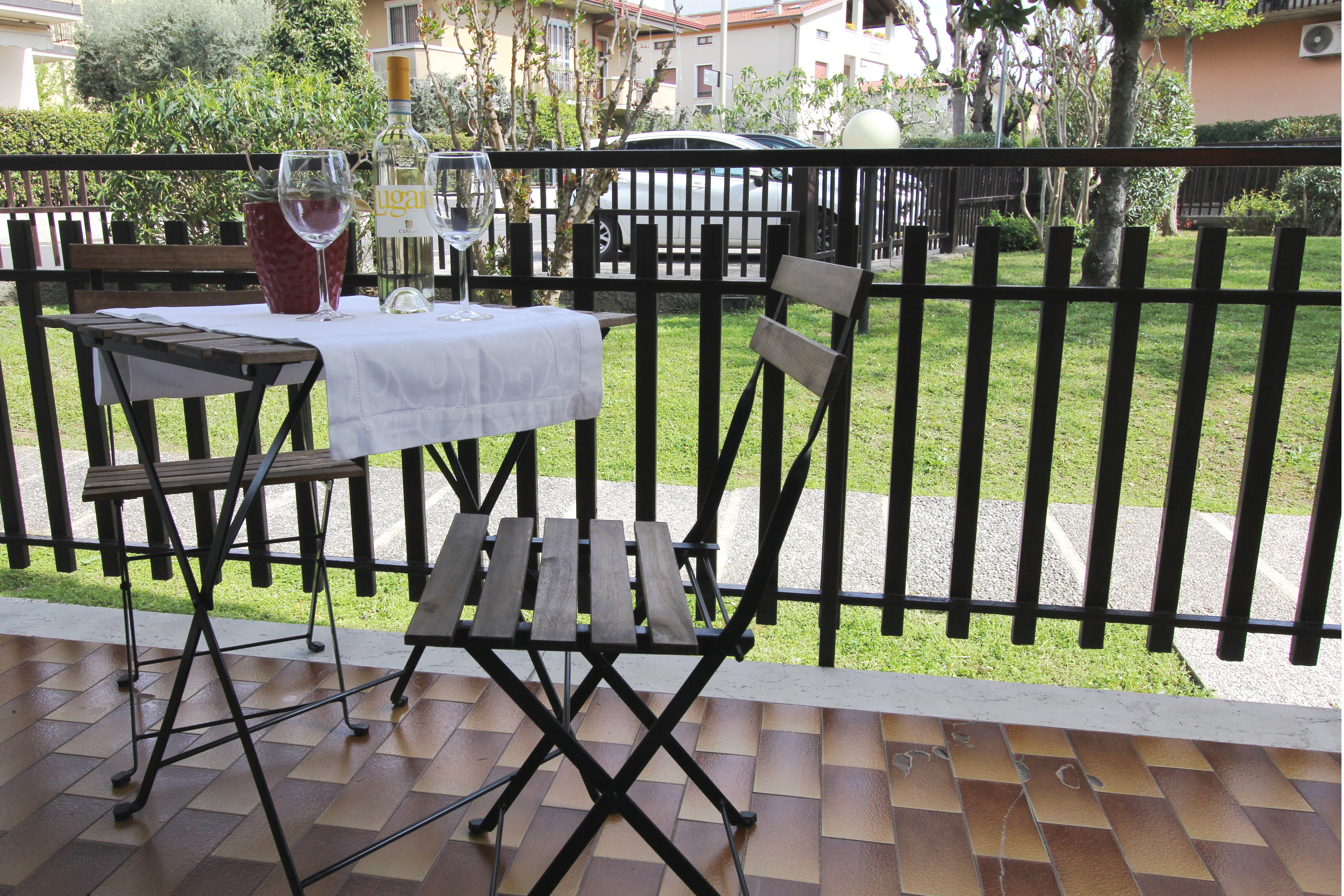 L'appartamento ha un'ampia zona giorno con divano letto e accesso al balcone, cucinotto separato, camera da letto, disimpegno e bagno con doccia. E' situato al piano terra e dal balcone si accede direttamente al parco e alla piscina condominiale.
